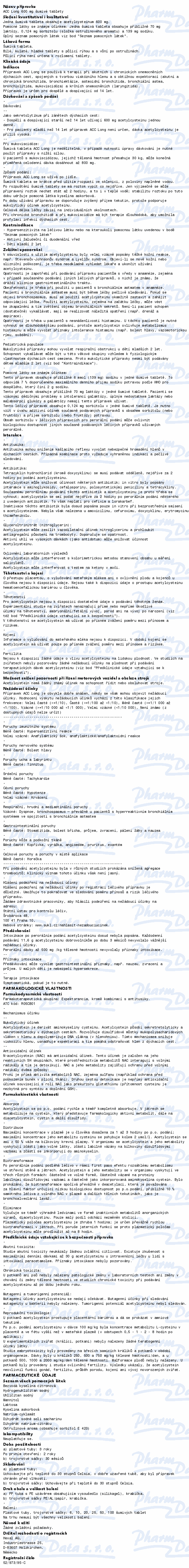 Šumivé tablety s vůní po ostružinách. Léčivá látka acetylcystein rozpouští všechny složky, které způsobují vazkost hlenu. Přípravek se užívá také při různých onemocněních dýchacích cest. Čtěte pozorně příbalový leták.