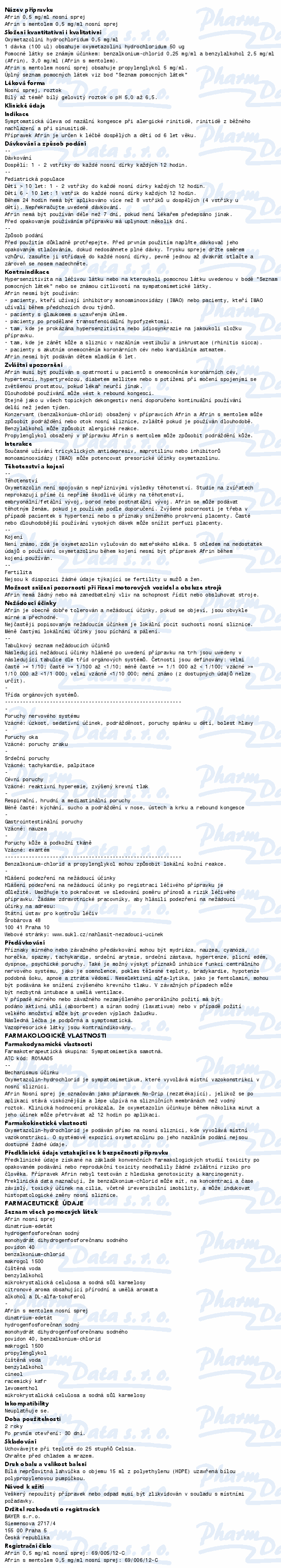 VezuLeky.cz > Zdraví a léky > Léky na ucpaný nos a bolest v krku > Afrin 0.5mg/ml nas.spr.sol.1x15ml/7.5mg