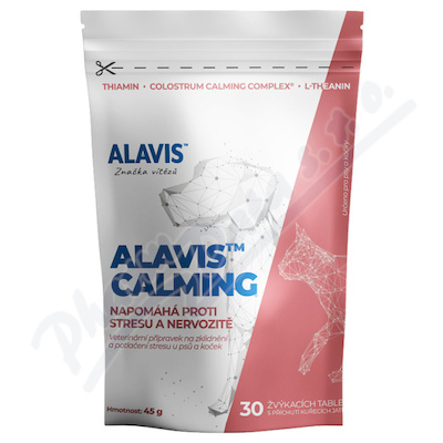 VezuLeky.cz > Veterina > Veterinární potravní doplňky > Vitamíny, minerály, stopové prvky > tablety > ALAVIS Calming 45g (cca 30tbl.) a.u.v.