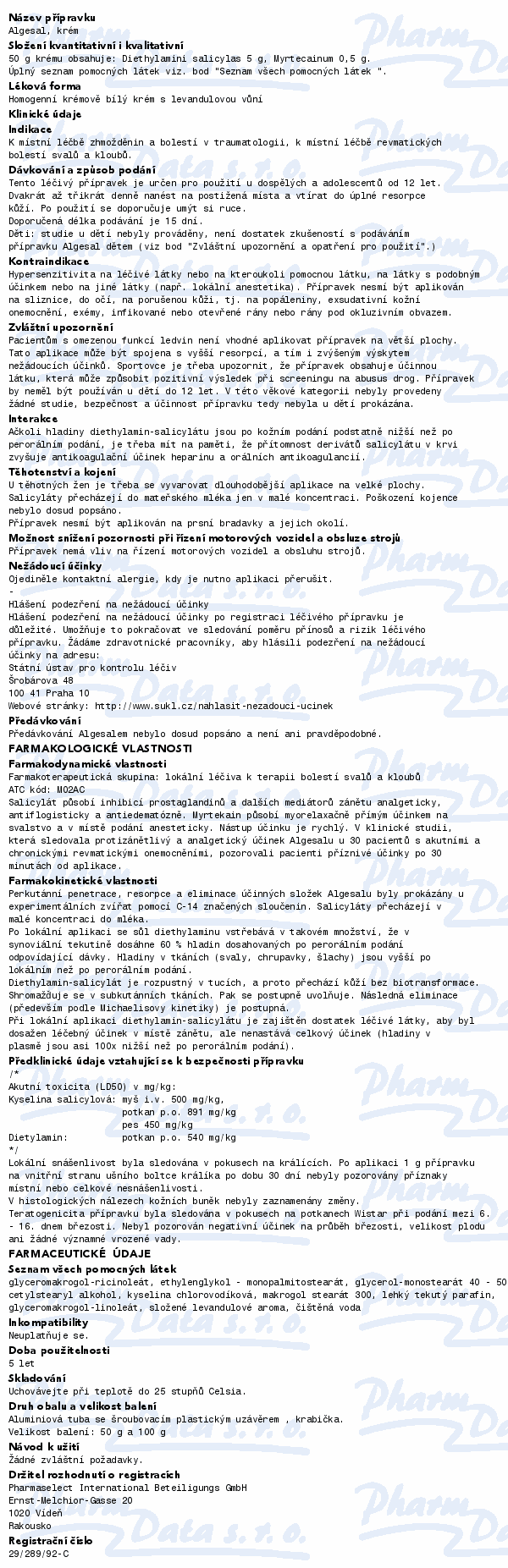 VezuLeky.cz > Trápí mě > Bolest zad a kloubů > Algesal drm.crm.1x50g