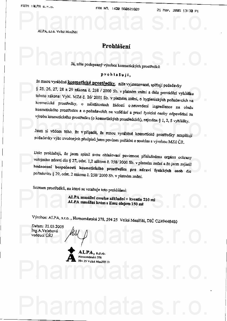 VezuLeky.cz > Kosmetika > Tělová kosmetika, deodoranty > Masážní emulze, krémy, gely > základní > Alpa masážní krém s Emu olejem 150ml