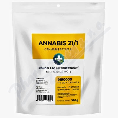 Konopí pro léčebné použití - Cannabis sativa L. - Annabis 21/1 (kód e-receptu 9190000) je indikováno jako podpůrná či doplňková léčba ke zmírnění symptomů doprovázejících závažná onemocnění. Návyková látka - výdej vázán výhradně na lékařský předpis.