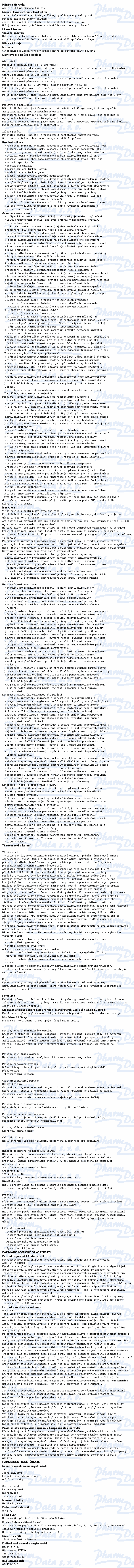 Přípravek Aspirin 500 mg obalené tablety obsahuje kyselinu acetylsalicylovou. Kyselina acetylsalicylová je analgetikum (ulevuje od bolesti) a antipyretikum (snižuje horečku). Čtěte pozorně příbalový leták.