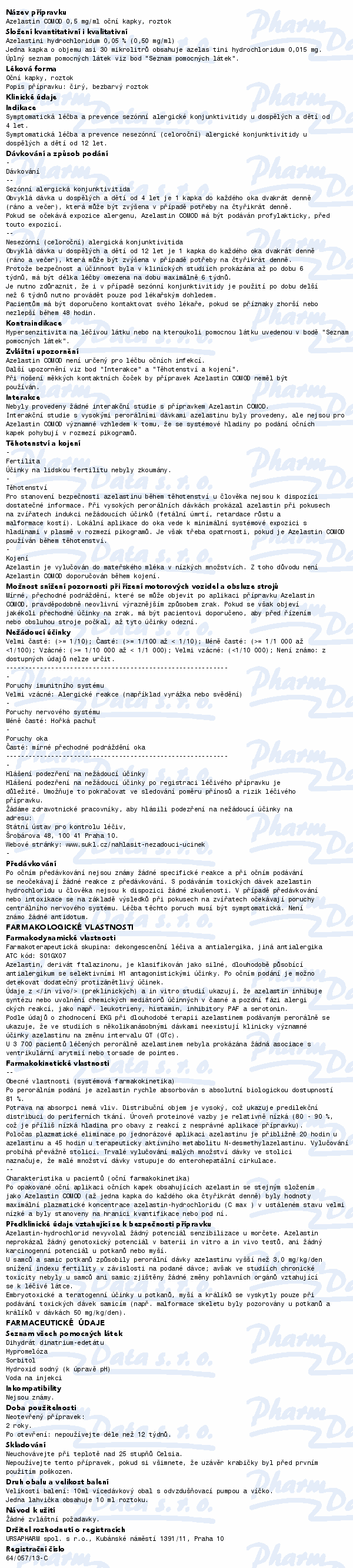 VezuLeky.cz > Zdraví a léky > Přípravky na oči - roztoky a kapky > Azelastin Comod 0.5mg/ml oph.gtt.sol.1x10ml/5mg