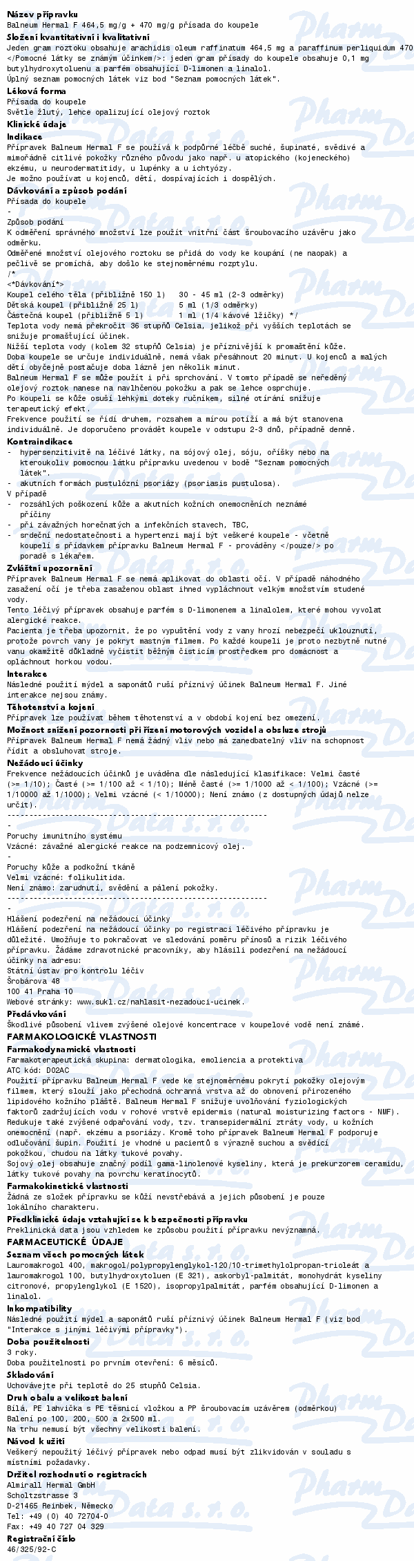 Balneum Hermal F 464.5mg/g+470mg/g adt.bal.1x500ml ks