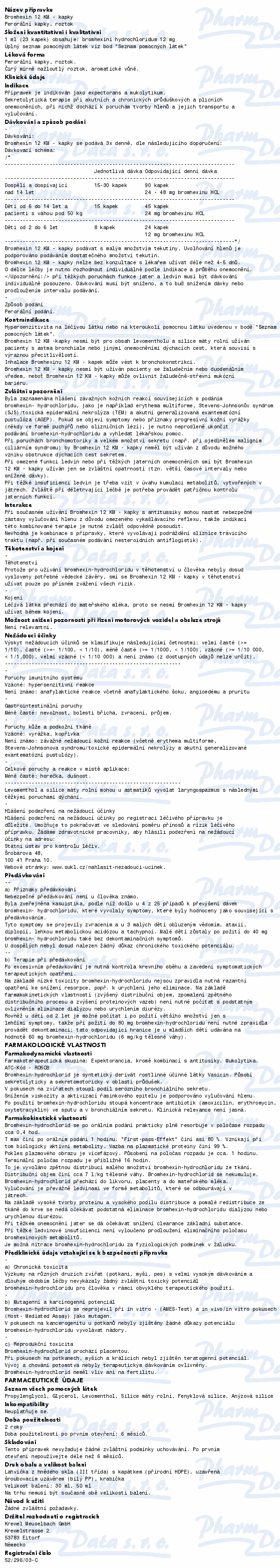 Přípravek je indikován jako expectorans a mukolytikum. Sekretolytická terapie při akutních a chronických průduškových a plicních onemocněních, při nichž dochází k poruchám tvorby hlenů a jejich transportu a vylučování. Čtěte pozorně příbalový leták.