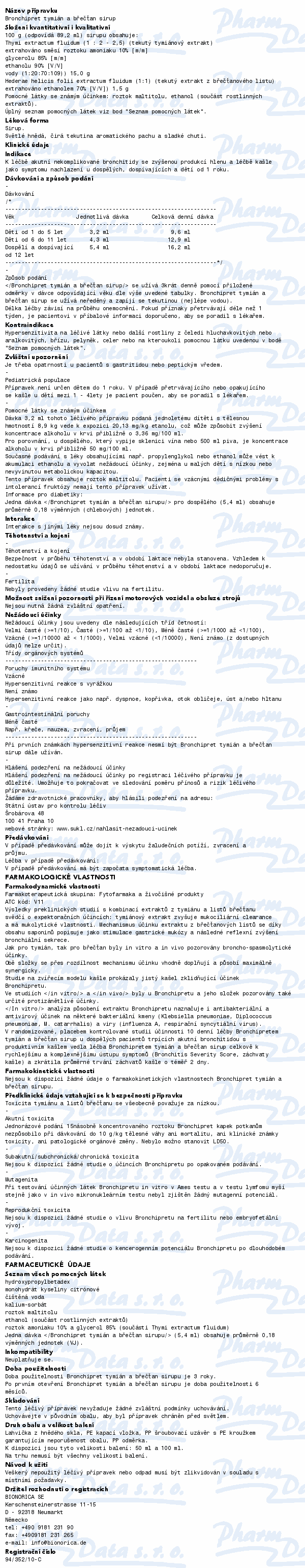 Bronchipret tymián a břečťan sirup je rostlinný lék na léčbu zánětlivých onemocnění dýchacích cest pro dospělé a dětí od 1 roku. Užívá se na zlepšení příznaků při zánětu průdušek spojeném s kašlem a onemocnění z nachlazení se zvýšenou tvorbou hlenu. Čtěte pozorně příbalový leták.