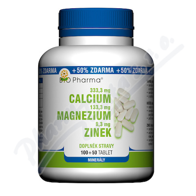 VezuLeky.cz > Doplňky stravy > Minerály a stopové prvky > Zinek > Calcium+Magnesium+Zinek tbl.100+50 Bio-Pharma