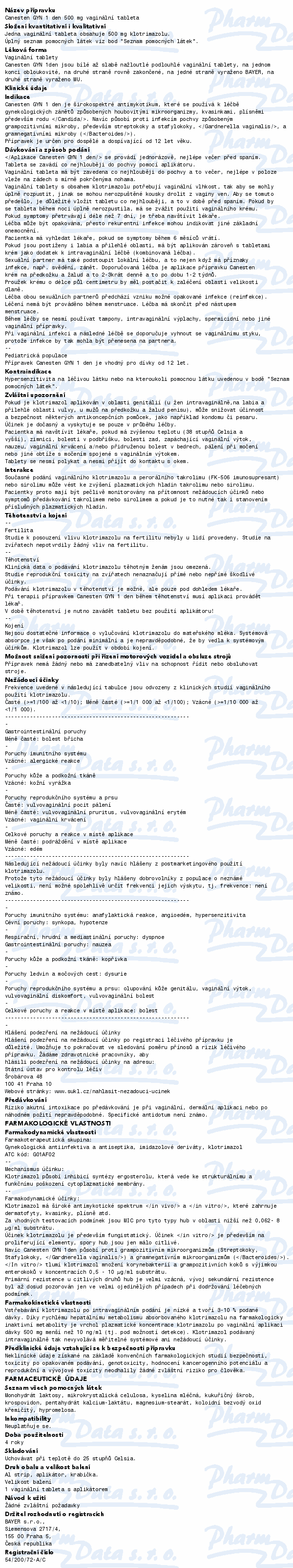 Canesten Gyn se používá k léčbě gynekologických zánětů způsobených houbovitými mikroorganizmy, kvasinkami a plísněmi. Působí proti Trichomonas vaginalis, infekcím pochvy způsobeným grampozitivními mikroby (Bacteroides, Gardnerella vaginalis). Čtěte pozorně příbalový leták.