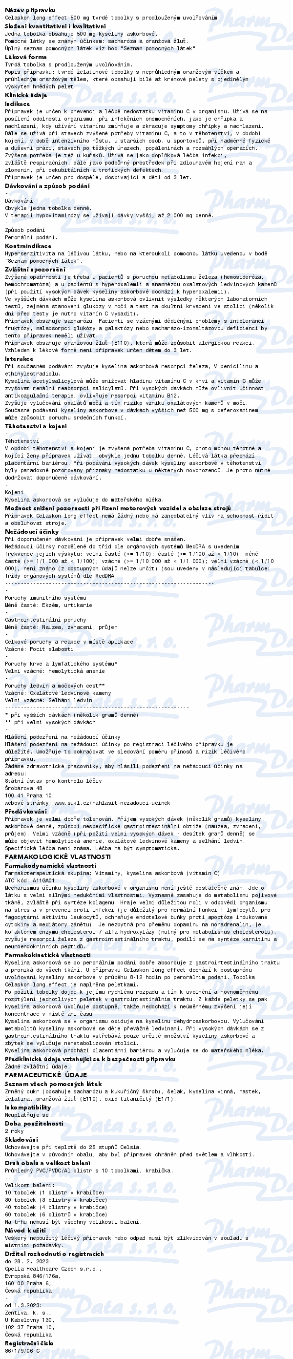 Přípravek Celaskon long effect je určen k prevenci a léčbě nedostatku vitamínu C v organismu. Užívá se na posílení imunitního systému (odolnosti) organismu při infekčních onemocněních jako je chřipka a nachlazení, zmírňuje a zkracuje jejich příznaky. Čtěte pozorně příbalový leták.