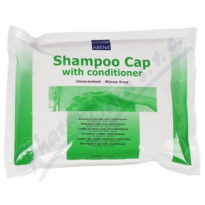 Koupací čepice (PVC) obsahující šampon i kondicionér - pro mytí vlasů bez vody - např. u pacientů (klientů zařízení sociální péče) na lůžku, při cestování atp.