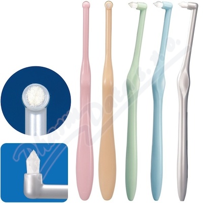 Kónický jednosvazkový zubní kartáček pro solo techniku čištění zubů. Kónické uspořádání trsu vláken umožňuje ještě důslednější odstraňování zubního plaku z dásňového žlábku a mezizubí.