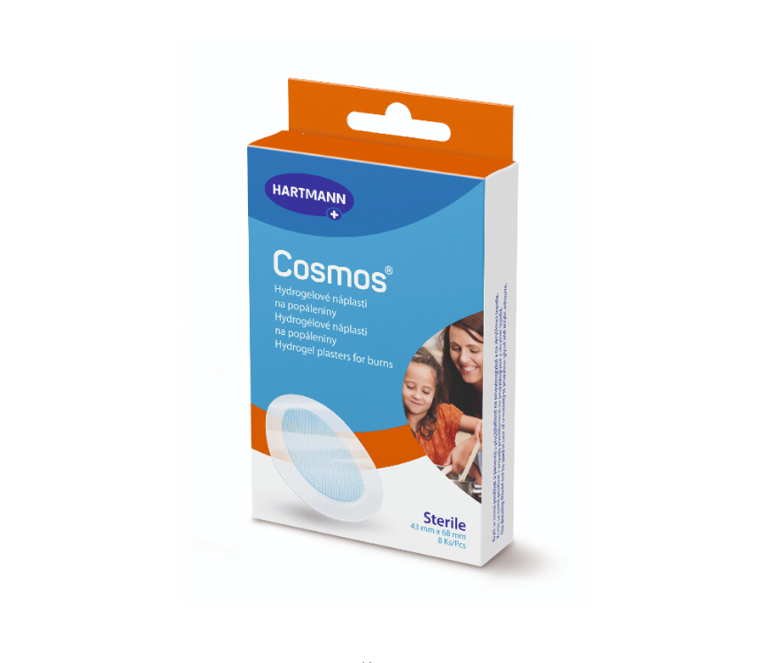 VezuLeky.cz > Zdravotní prostředky > Prostředky obvazové, krycí a fixační > Krytí s léčebným účinkem > hydrokoloidní > Cosmos náplasti na popáleniny 68x43mm 8ks
