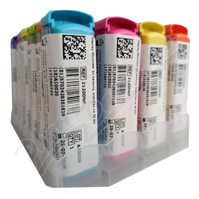 Displej 28 barevných denních zásobníků na léky a potravinové doplňky. Samostatné denní zásobníky jsou uzavíratelné, mají 4 přihrádky na ráno, poledne, večer a noc. Možnost barevného rozlišení pro jednotlivé uživatele.