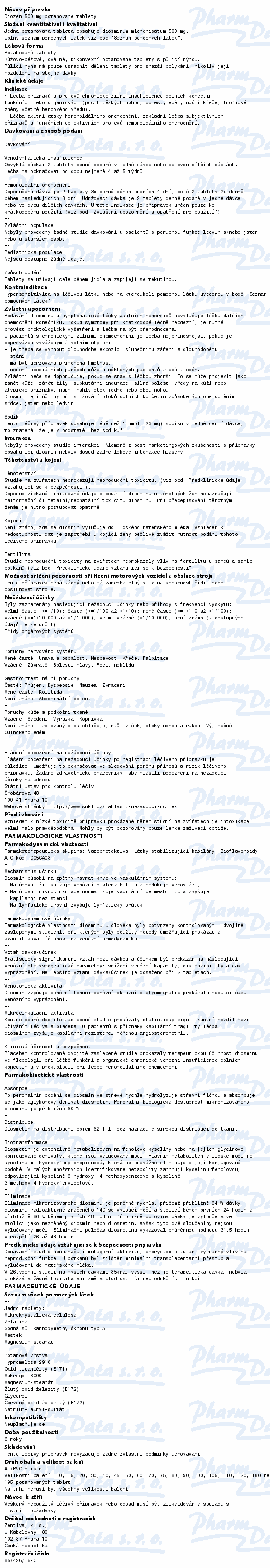 VezuLeky.cz > Zdraví a léky > Léky na žíly a cévy > Diozen 500mg tbl.flm.60