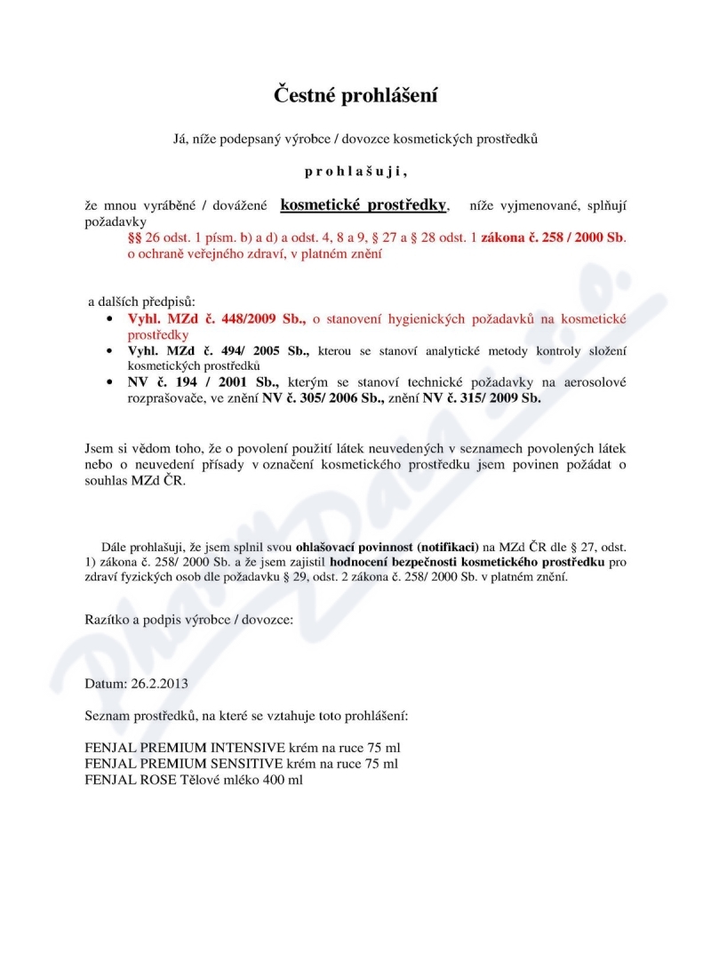 VezuLeky.cz > Kosmetika > Tělová kosmetika, deodoranty > Krémy, masti, gely, balzámy, emulze, tyčinky > suchá a citlivá pleť > FENJAL Intensive krém na ruce 75ml