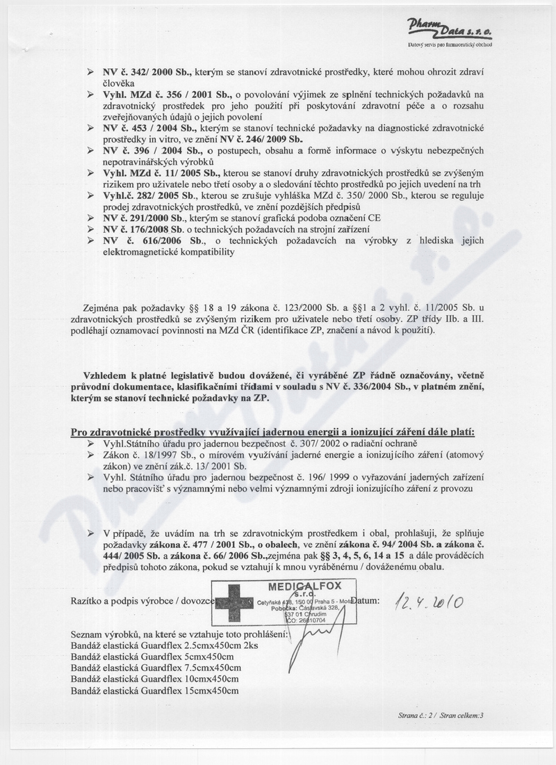 Bandáž Guardflex z netkaného materiálu, povrchově upraveno spandexem a latexem. Je určena pro běžné i kompresní obvazy všeho druhu v oblasti kloubů a konických částí končetin. Tažnost až 150%.