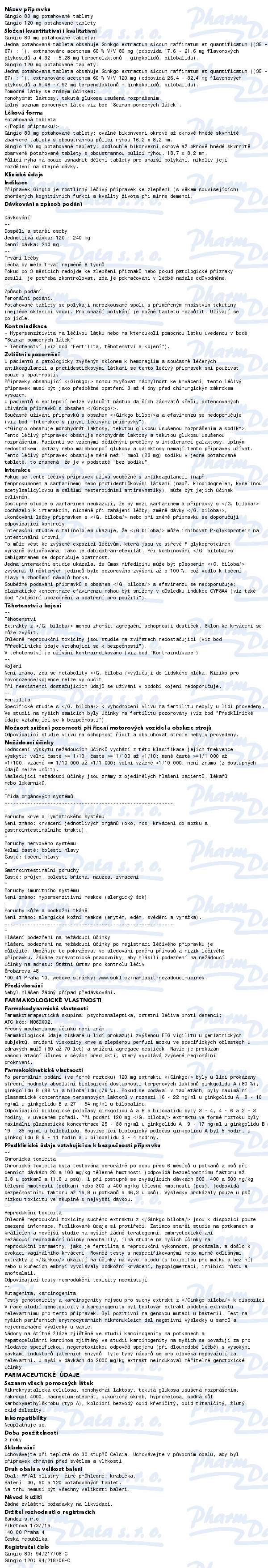 Léčivý přípravek Gingio 120 se používá ke zlepšení s věkem související zhoršenou duševní výkonností (poruchy paměti, poruchy koncentrace, depresivní nálady u starších lidí), ke zlepšení kvality života při mírné demenci a léčbě poruch prokrvení končetin. Čtěte pozorně příbalový leták.