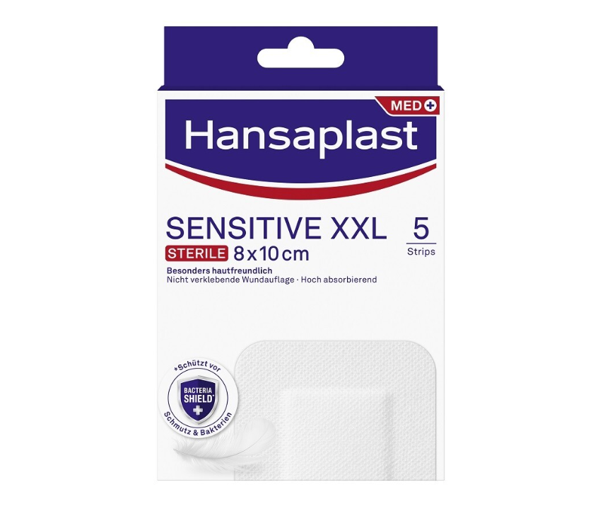 VezuLeky.cz > Zdravotní prostředky > Prostředky obvazové, krycí a fixační > Náplasti > na rány > Hansaplast Sensitive XXL elast.náplast 8x10cm 5ks