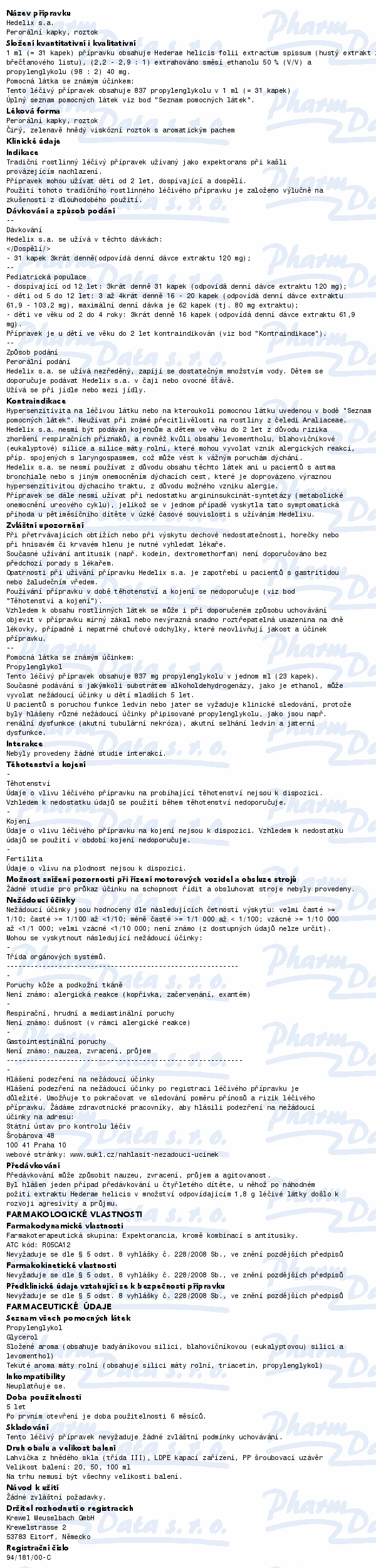 Tradiční rostlinný léčivý přípravek používaný k podpůrné léčbě jako expektorans při kašli provázejícím nachlazení. Použití tohoto tradičního rostlinného léčivého přípravku je založeno výlučně na zkušenosti z dlouhodobého použití. Čtěte pozorně příbalový leták.