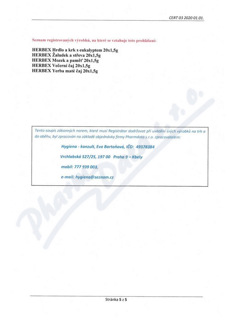 VezuLeky.cz > Maminky a děti > Čaje > Bylinné > Směsové > sáčky > HERBEX Večerní čaj n.s.20x1.5g