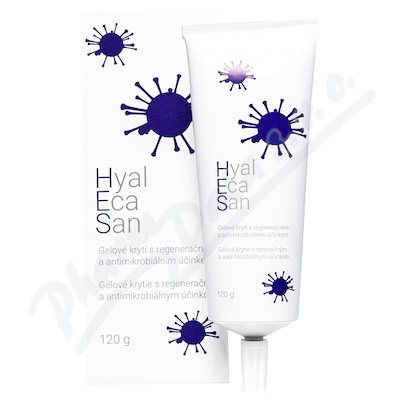 HyalEcaSan je gelové krytí s antimikrobiálním efektem a regeneračním účinkem K lokální aplikaci na nehojící se rány (bércové vřed, diabetické defekty, praskliny, trhliny, proleženiny, píštěle) a popáleniny, rozpadlé pooperační a posttraumatické rány.