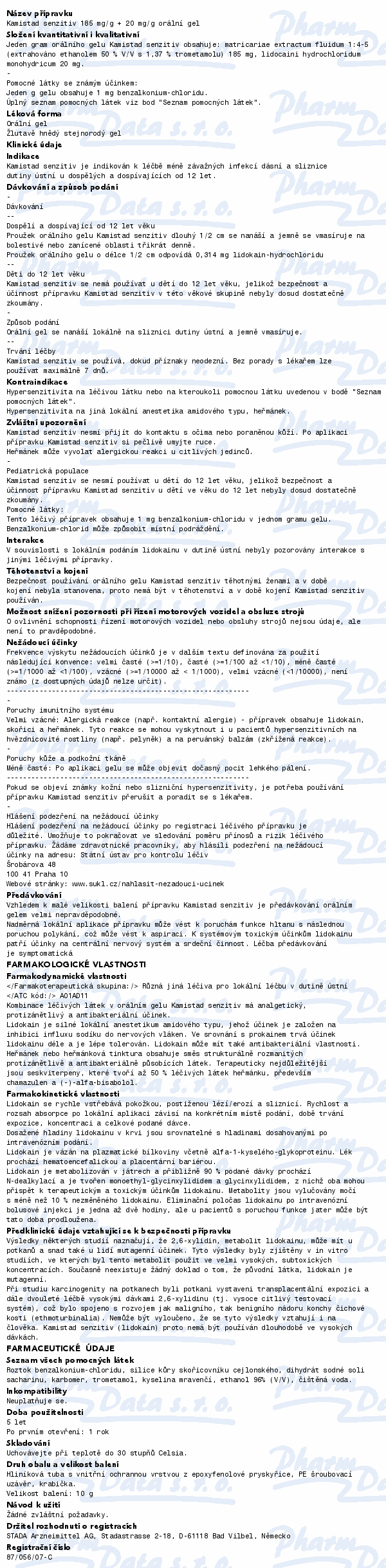 Kamistad senzitiv, orální gel, který má protibolestivý, protizánětlivý a antibakteriální účinek. Vhodný od 12 let. Čtěte pozorně příbalový leták.