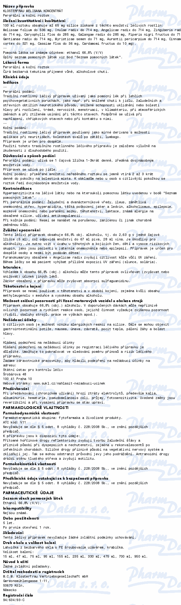 VezuLeky.cz > Zdraví a léky > Léky pro lepší spánek a usínání > Klosterfrau MELISANA koncentrát 1x155ml
