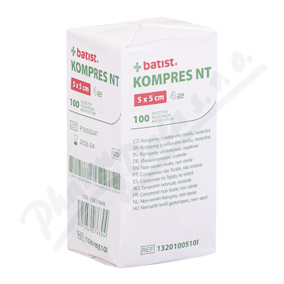 VezuLeky.cz > Zdravotní prostředky > Prostředky obvazové, krycí a fixační > Kompresy > z netkaného textilu > KOMPRES NT nesterilní 4vrstvy 5x5cm 100ks