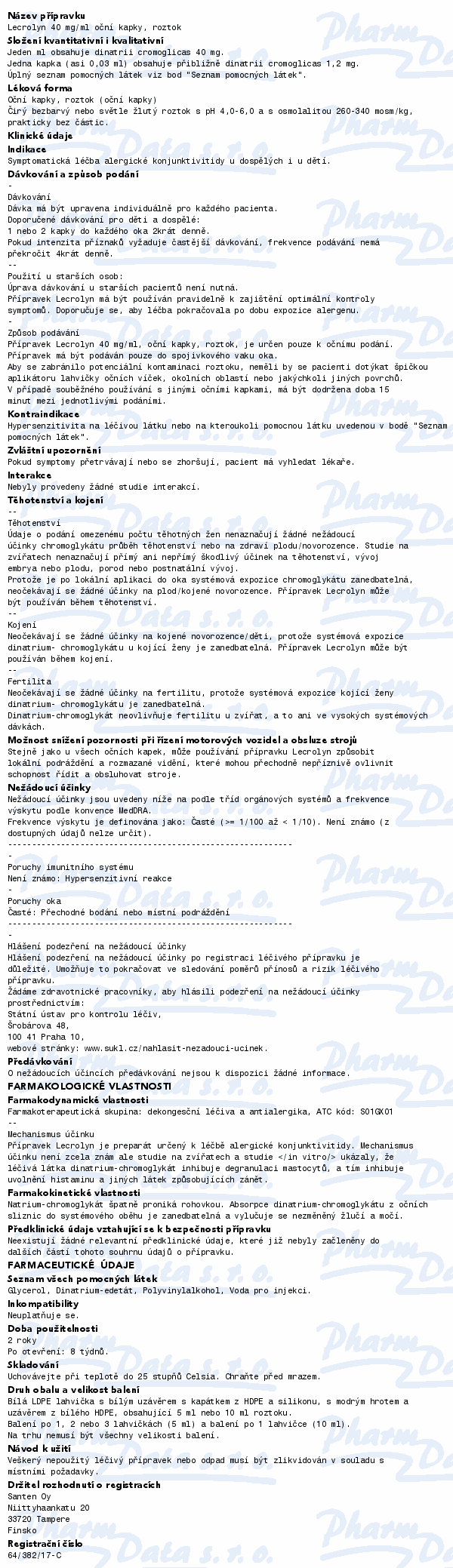 VezuLeky.cz > Zdraví a léky > Přípravky na oči - roztoky a kapky > Lecrolyn 40 mg/ml oph. gtt. sol. 1x10ml