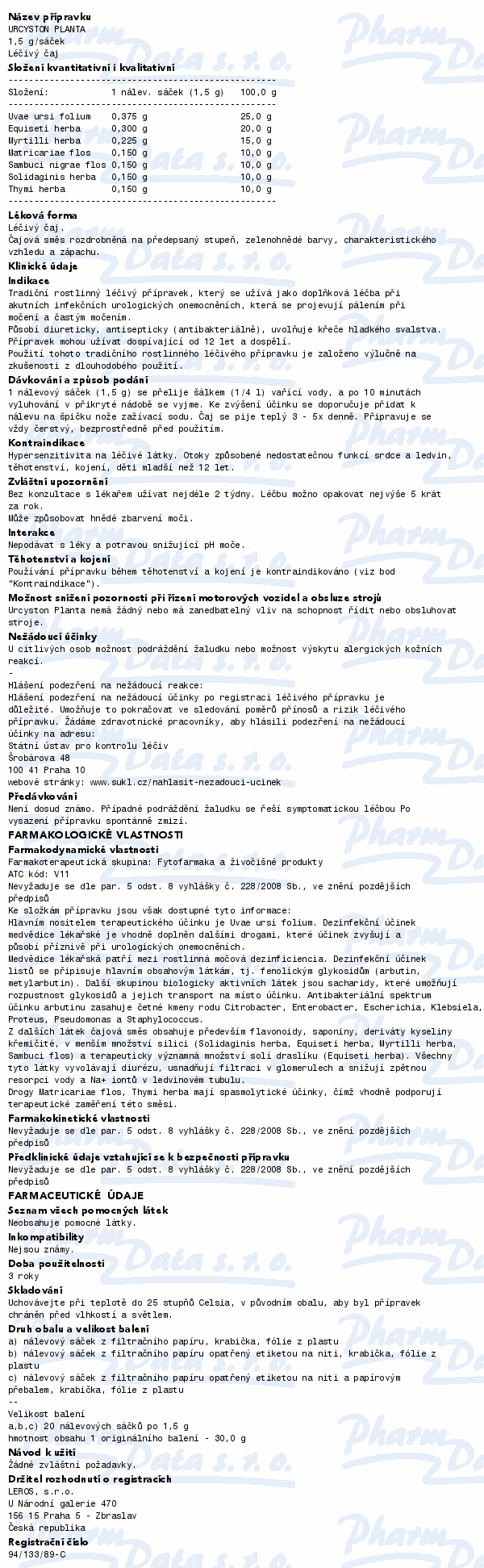 VezuLeky.cz > Maminky a děti > Čaje > Bylinné > LEROS Urcyston Planta por.spc.20x1.5g sáčky