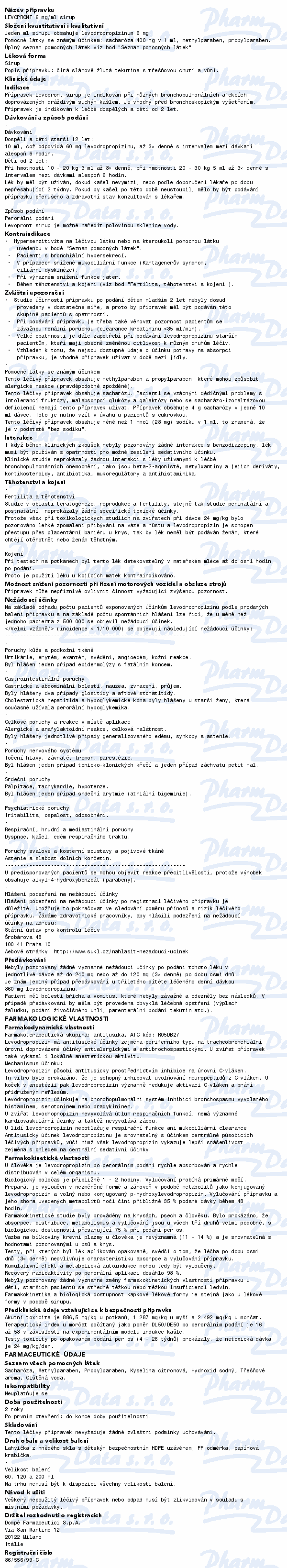 Přípravek patří mezi antitusika, což jsou látky tlumící kašel. Léčivá látka levodropropizin mírní kašel bez ovlivnění centra kašle. Užívá se k symptomatické léčbě suchého dráždivého neproduktivního kašle (bez tvorby hlenu). Čtěte pozorně příbalový leták.