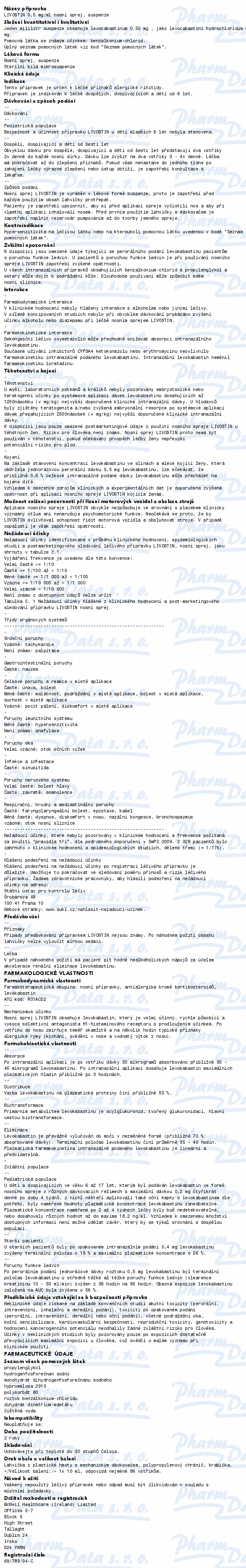 VezuLeky.cz > Zdraví a léky > Přípravky na oči - roztoky a kapky > Livostin 0.5mg/ml nas.spr.sus.1x10ml