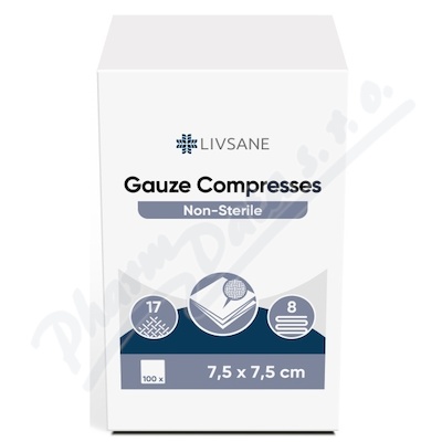 VezuLeky.cz > Zdravotní prostředky > Prostředky obvazové, krycí a fixační > Kompresy > z gázy > LIVSANE Nesterilní gázové kompresy 7.5x7.5cm 100ks