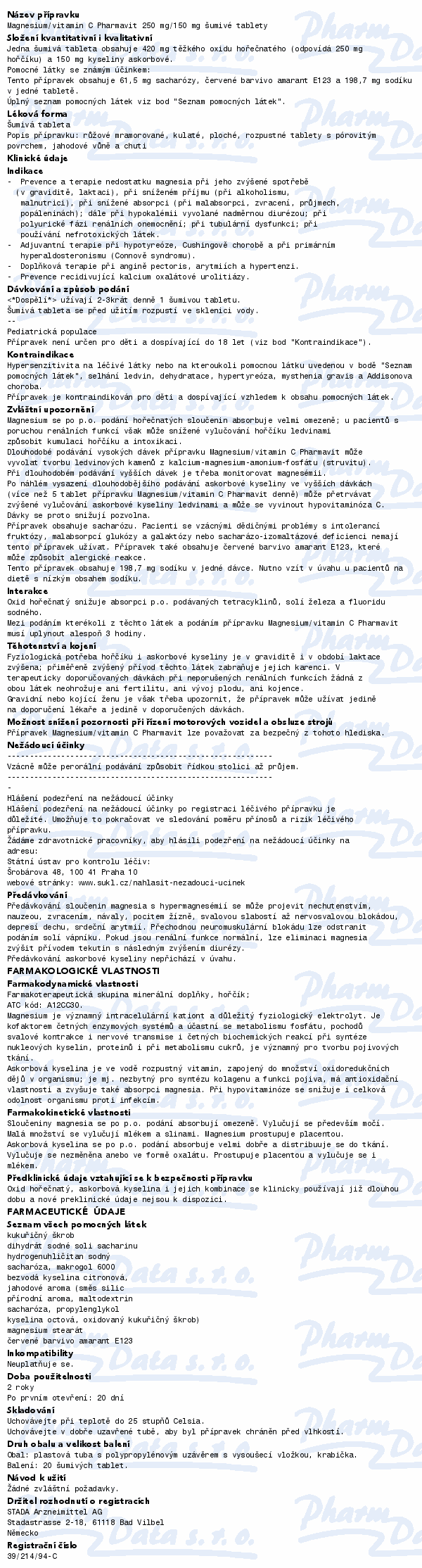 VezuLeky.cz > Trápí mě > Svalové křeče > Magnesium/vitamin C Pharmavit 250mg tbl.eff.20
