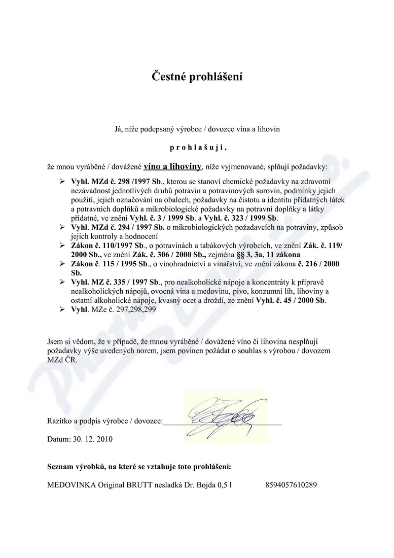 VezuLeky.cz > Doplňky stravy > Potraviny ostatní > Nápoje > MEDOVINKA Original BRUTT nesladká Dr. Bojda 0.5 l