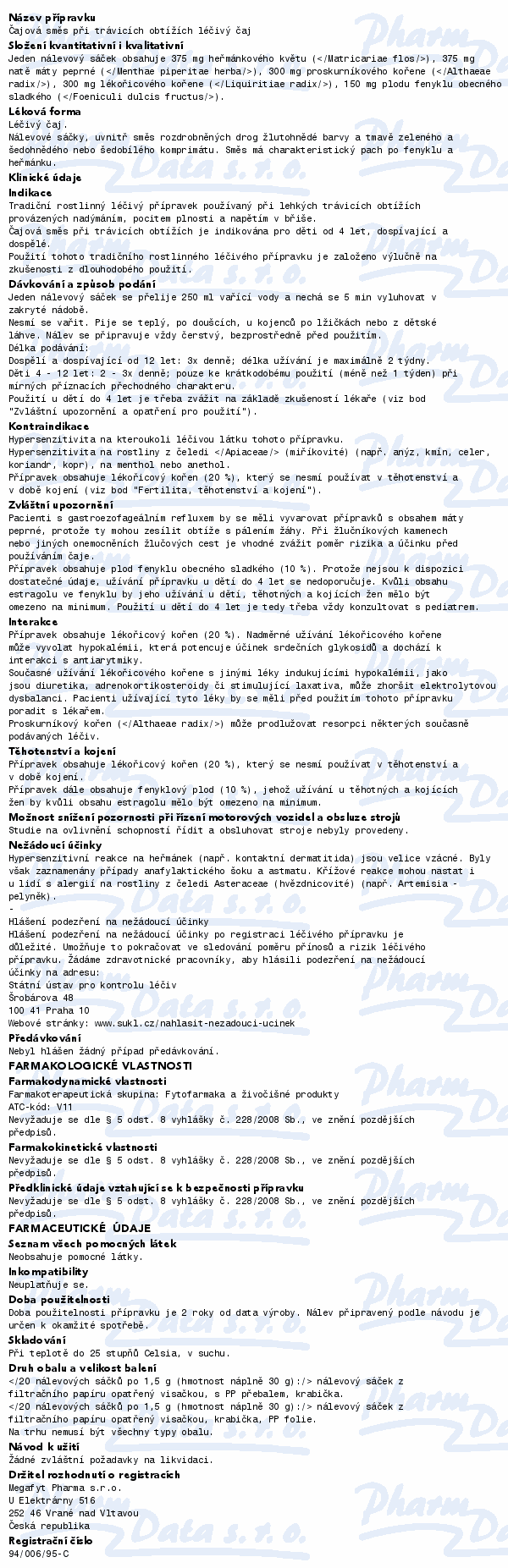 VezuLeky.cz > Zdraví a léky > Léky pro lepší spánek a usínání > Megafyt Čaj.směs při tráv.obtížích spc.scc.20 II