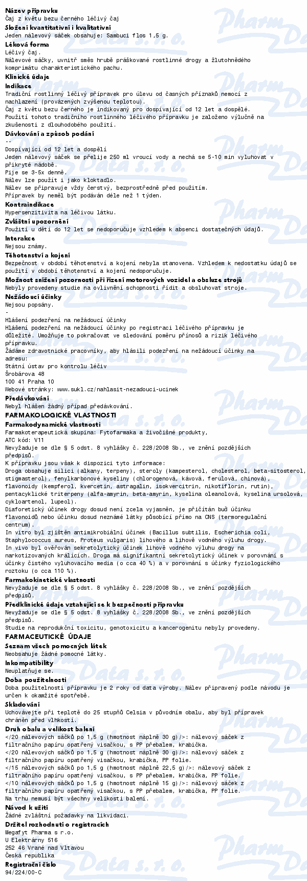 VezuLeky.cz > Zdraví a léky > Léky pro lepší spánek a usínání > Megafyt Čaj z květu bezu černého spc.20 I