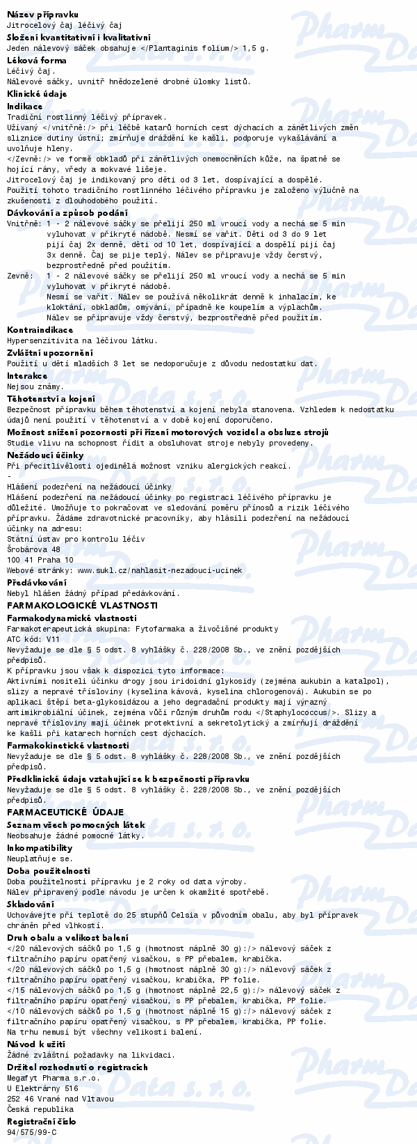 VezuLeky.cz > Zdraví a léky > Léky pro lepší spánek a usínání > Megafyt Jitrocelový čaj spc.20 I