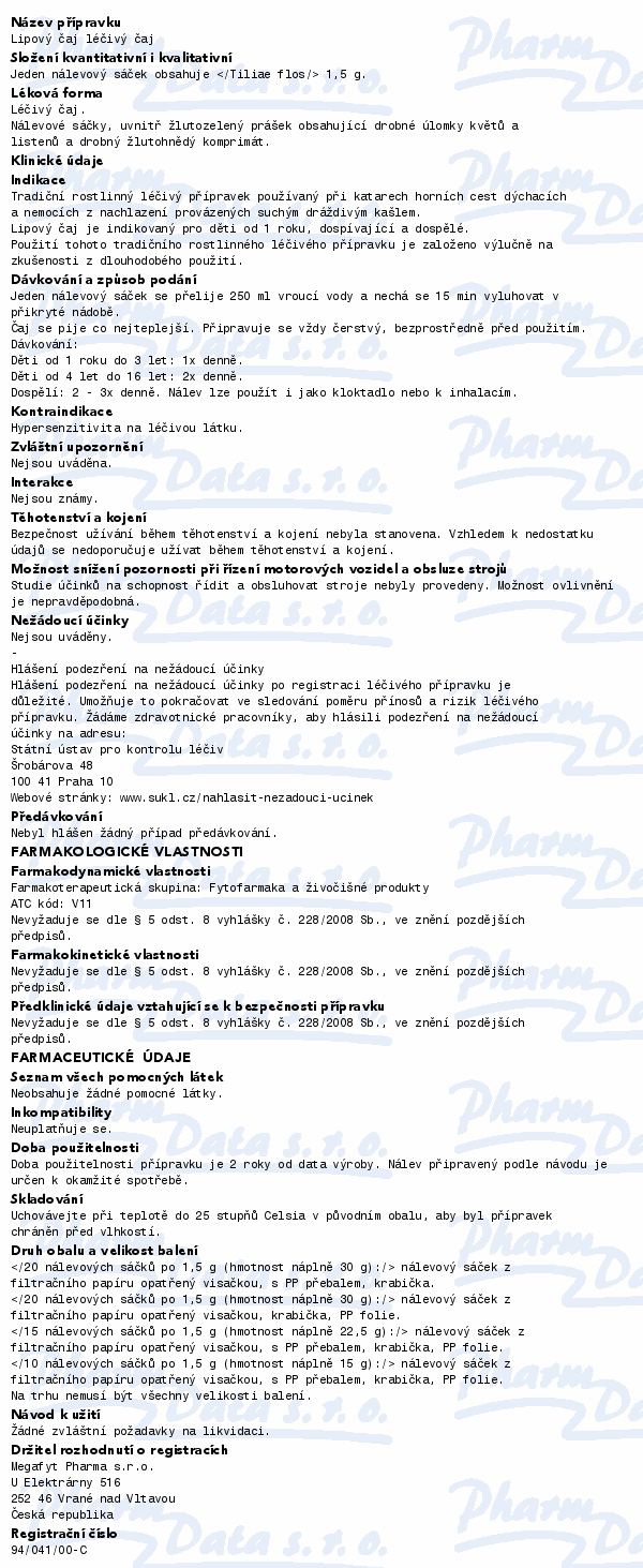 VezuLeky.cz > Zdraví a léky > Léky pro lepší spánek a usínání > Megafyt Lipový čaj spc.20 I
