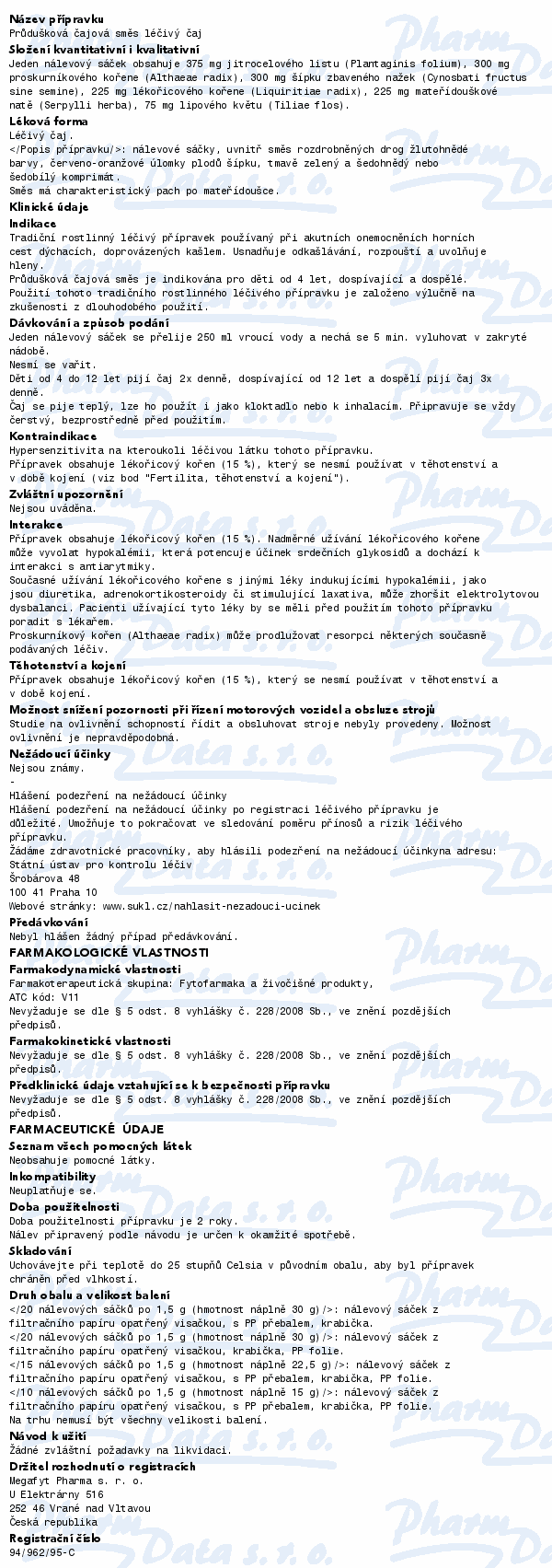 VezuLeky.cz > Zdraví a léky > Léky pro lepší spánek a usínání > Megafyt Průdušková čajová směs 20x15g