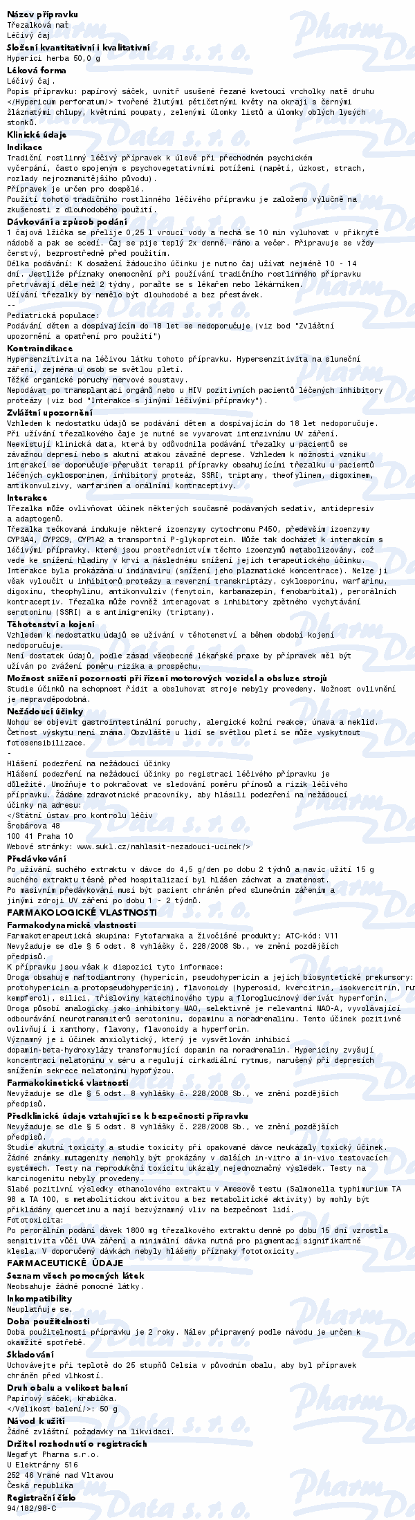 Tradiční rostlinný léčivý přípravek k úlevě při přechodném psychickém vyčerpání, často spojeným s psychovegetativními potížemi (napětí, úzkost, strach). Přípravek je určen pro dospělé. Čtěte pozorně příbalový leták.