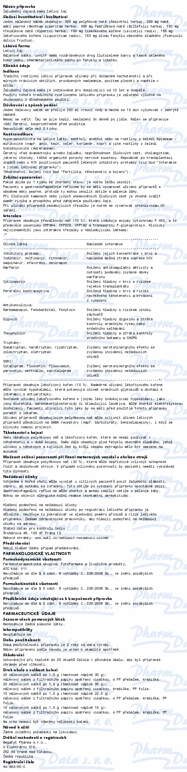 VezuLeky.cz > Zdraví a léky > Léky pro lepší spánek a usínání > Megafyt Žaludeční čajová směs spc.20