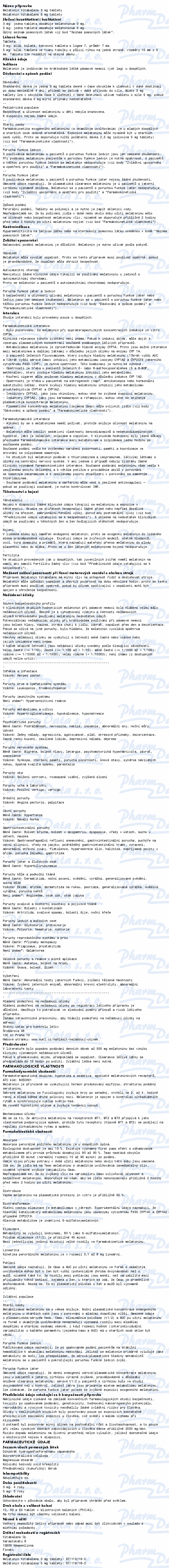 Melatonin Vitabalans je indikován pacientům ke krátkodobé léčbě pásmové nemoci (jet lag) u dospělých. Čtěte pozorně příbalový leták.