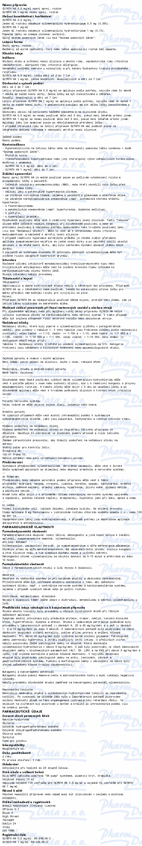 Přípravek OLYNTH HA je určen ke snížení otoku a zvlhčení nosní sliznice při akutní rýmě, při nadměrné tvorbě hlenu způsobené vazomotorickou rýmou a při alergické rýmě. OLYNTH HA 0,5 mg/ml je určen k léčbě dětí od 2 do 7 let. Čtěte pozorně příbalový leták.