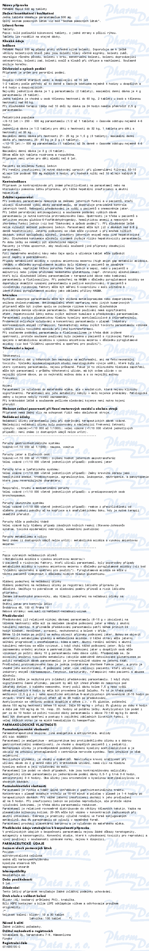 Paramax Rapid se užívá k rychlé a účinné úlevě při bolestech hlavy, migréně, bolestech zad, zubů, pohybového ústrojí, při bolestivé menstruaci a ke snížení zvýšené tělesné teploty. Paramax Rapid též přináší úlevu při nachlazení a bolesti v krku. Čtěte pozorně příbalový leták.