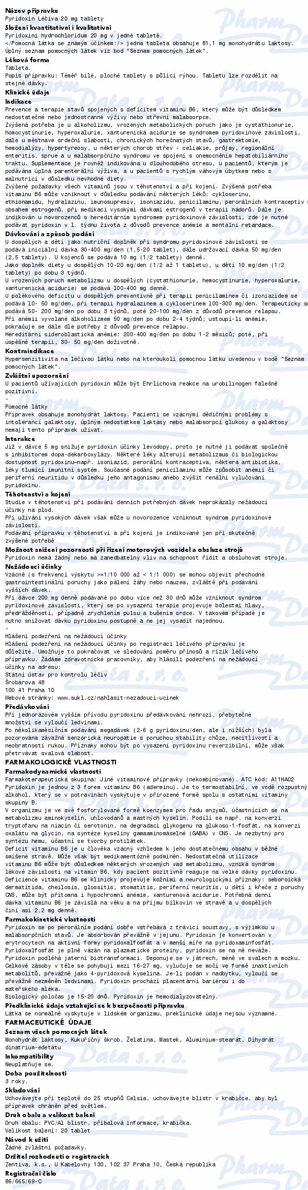 Pyridoxin tbl.20x20mg Léčiva vám po Ostravsku, Těšínsku a Frýdecko-Místecku doručíme do 24 hodin.
