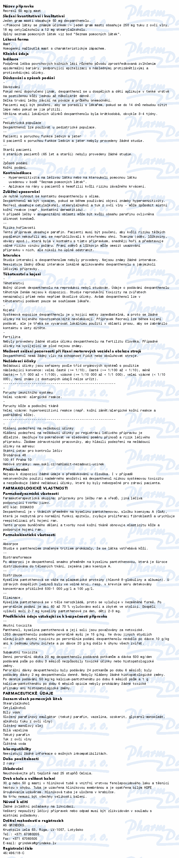 Přípravek Recreol obsahuje léčivou látku dexpanthenol, která patří do skupiny přípravků k léčbě ran a vředů. Dexpanthenol se v tkáních přeměňuje na kyselinu pantothenovou. Kyselina pantothenová obnovuje pružnost pokožky a podporuje hojení ran. Čtěte pozorně příbalový leták.