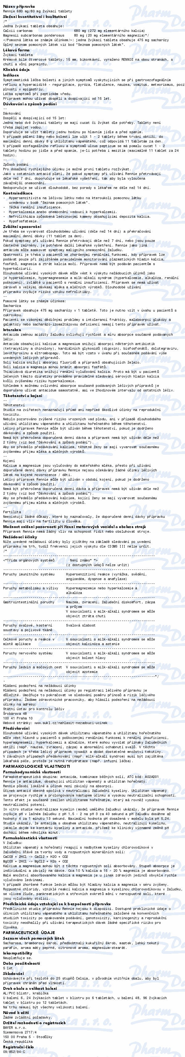 Rennie žvýkací tablety jsou léčivým přípravkem, který chrání sliznici žaludku a tenkého střeva tím, že působí proti překyselení žaludeční šťávy. Čtěte pozorně příbalový leták.