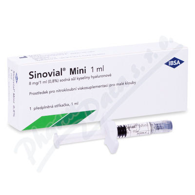 Prostředek pro nitrokloubní viskosuplementaci pro malé klouby a šlachová pouzdra. Sterilní - jednorázový. Sinovial Mini nahrazuje sinoviální tekutinu, čímž umožňuje obnovení fyziologických vlastností kloubů postižených artrózou.
